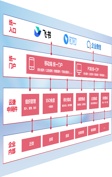 对协作平台提供支持服务,,支持企业应用与协作平台对接,,,,包含组织同步、、消息集成、、、待办集成等。。。支持目前主流的协作平台:钉钉、、企微和飞书。。。。